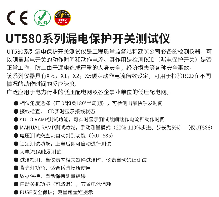 優(yōu)利德UNI-T 漏電保護開(kāi)關(guān)測試儀,UT585